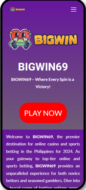 Welcome to BIGWIN69, the Number 1 and most trending destination for online casino and sports betting in the Philippines for 2024. As the premier gateway to top-tier online and sports betting, BIGWIN69 offers an unparalleled experience for both novice bettors and seasoned gamblers. Dive into a broad range of betting options across global sports events and popular casino games, all designed to deliver continuous entertainment and exceptional chances to win. Whether you're placing bets on your favorite sports team or engaging in exciting casino games, BIGWIN69 ensures a smooth, secure, and thrilling betting journey.